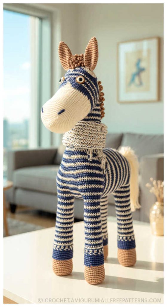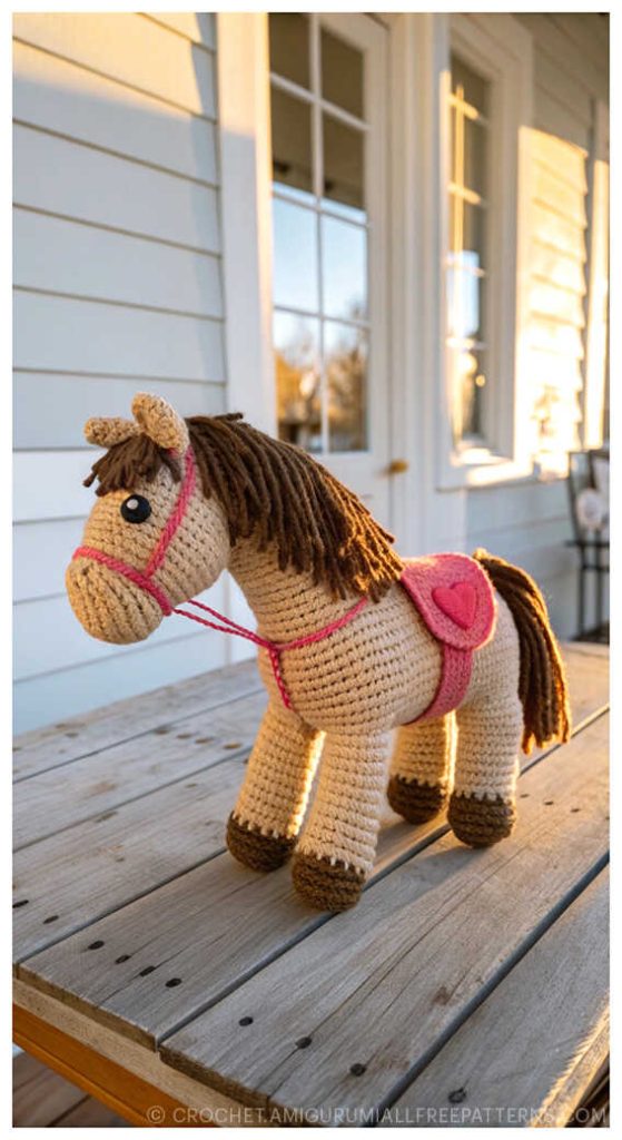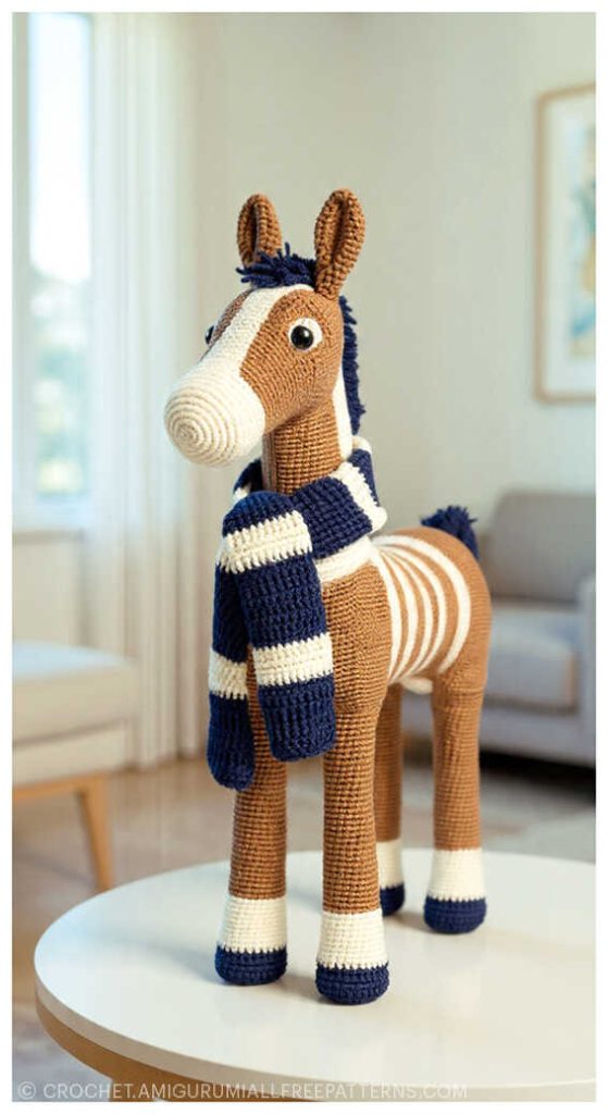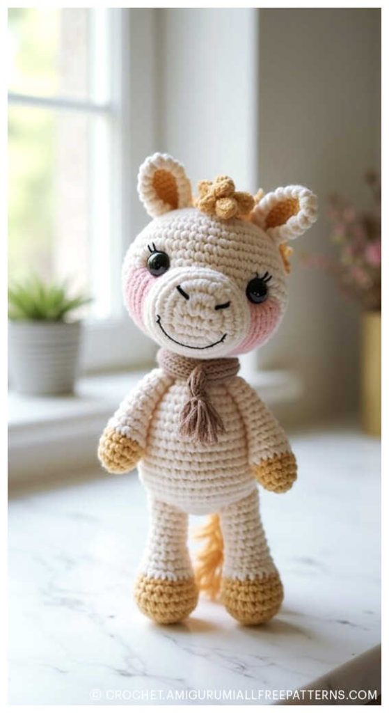 Bring a touch of handmade charm to your amigurumi collection with this Amigurumi Cute Horse Crochet Free Pattern, beautifully designed by Fairy Crochet. This adorable horse measures approximately 20 cm (7.8″) standing and 16 cm (6.3″) sitting, making it the perfect size for gifts, nursery décor, or a whimsical crochet shelf buddy. Crafted with soft and versatile YarnArt Jeans yarn, the pattern is step by step, beginner friendly, and ideal for anyone who loves creating cute animals with clean shaping and smooth color transitions. Essentials like 12 mm safety eyes, a 2.25 mm crochet hook, and a bit of fiberfill help bring this sweet little horse to life.
