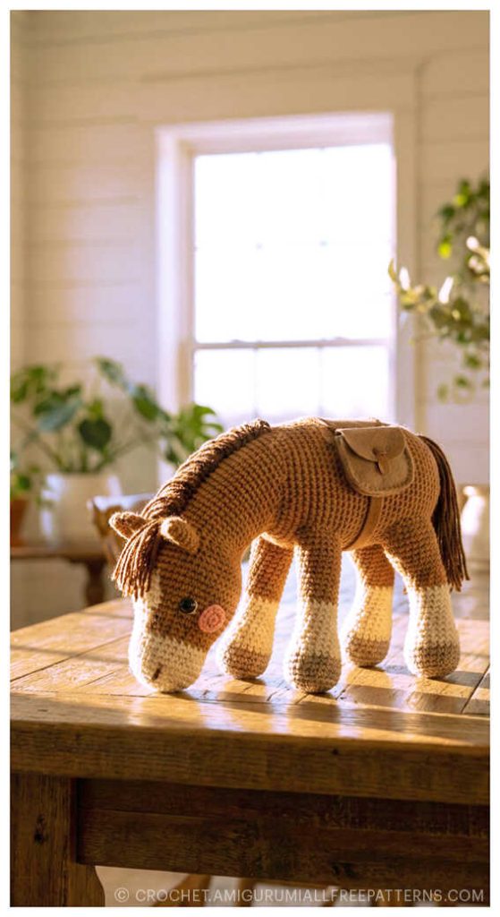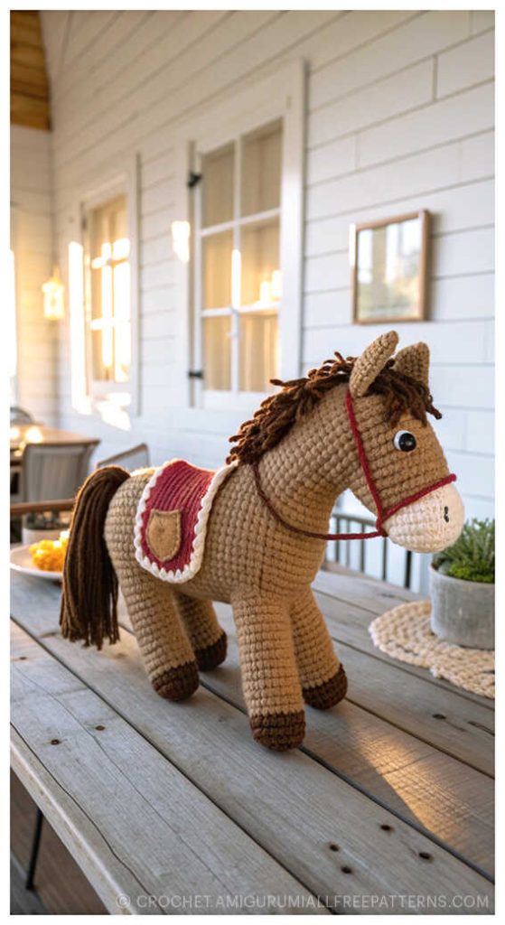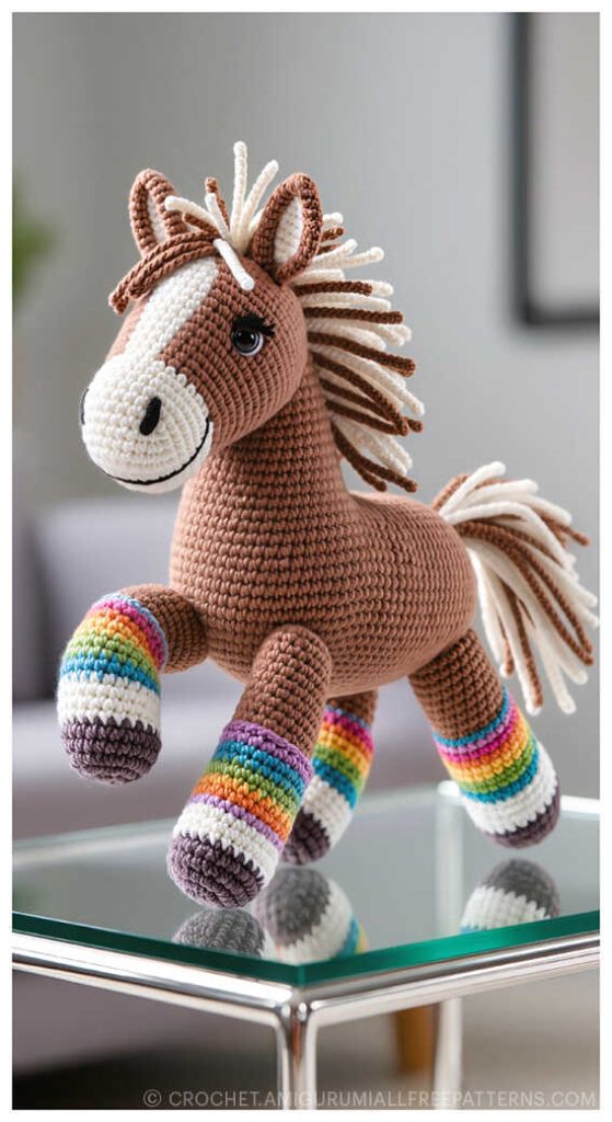 In the full pattern below, you’ll find clear instructions using shades such as sand (#07), brown (#40), graphite (#28), and turquoise (#76), along with simple tools like a stitch marker, tailor’s pins, and a needle with a big eye. Many materials such as white, brown, and black threads are used for the final detailing to give your horse its charming personality. Huge thanks to Fairy Crochet (YouTube) for sharing this delightful design. And don’t forget—at the end of the tutorial you’ll also discover wonderful amigurumi horse ideas to inspire your next crochet project!