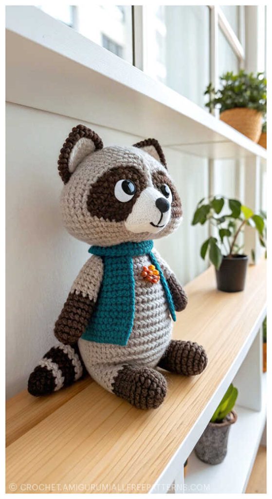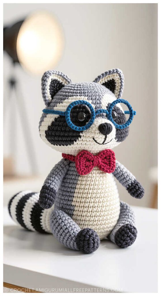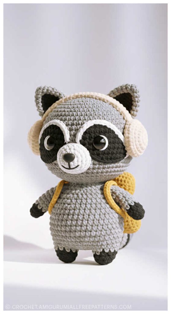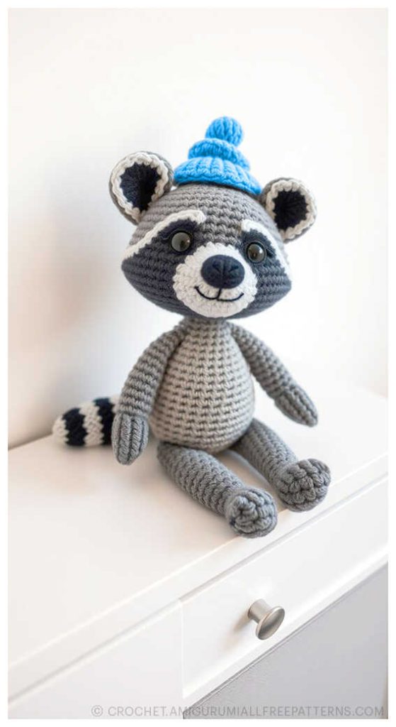 Bring a touch of woodland charm to your handmade collection with this Crochet Raccoon Free Amigurumi Pattern, beautifully designed by Evgenia Agapova. This step-by-step, beginner-friendly master class shows you exactly how to create an adorable raccoon with securely attached limbs using plastic joints or cotter pins, though you can also opt for thread fastening or simply sew the paws on—whatever feels most convenient for you. Worked mainly with soft and versatile YarnArt Jeans yarn (colors 46, 03, and 53) and detailed using 10 mm safety eyes, the pattern guides you through shaping the face, adding the tail accents, and stitching the sweetest little outfit with Gazzal Baby Cotton. With a comfortable 2 mm crochet hook, a long needle, filler like holofayber, and just a bit of patience, you’ll watch this forest friend come to life in your hands.